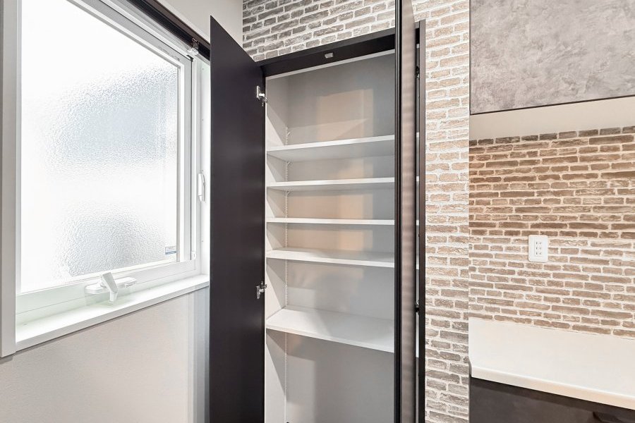カップボード横にはパントリー収納があります。