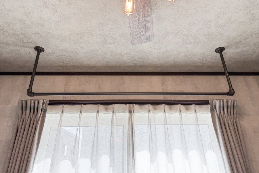 リビングにはアイアンハンガーパイプを設置。