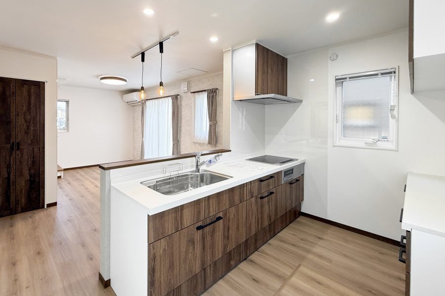 人造大理石のワークトップやお手入れ簡単なIHクッキングヒーターなど、お料理が楽しくなるキッチンです。 -