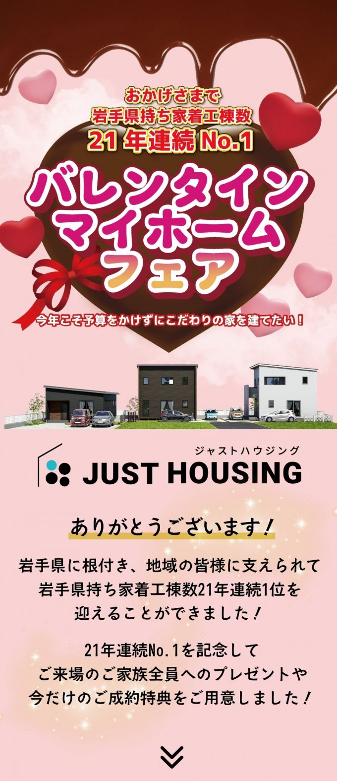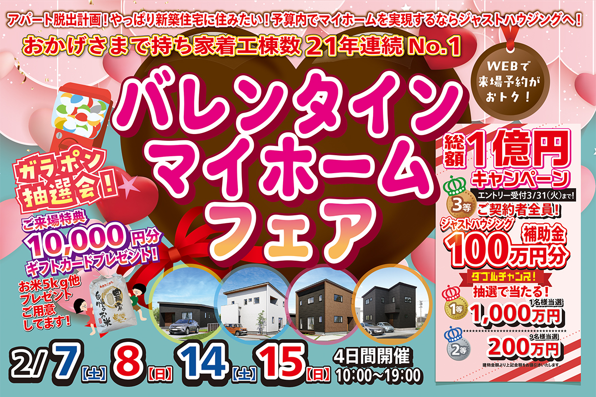 バレンタインマイホームフェア!おかげさまで岩手県持ち家着工棟数21年連続No.1!