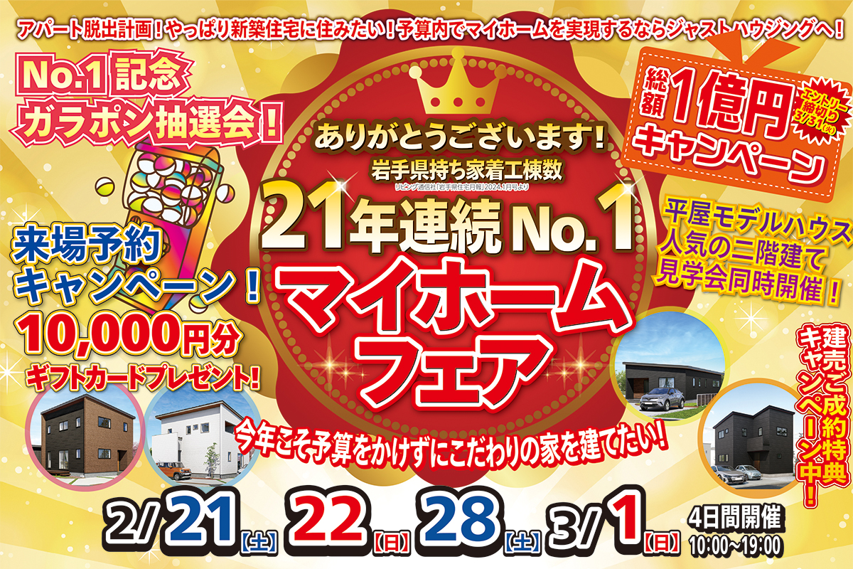 岩手県持ち家着工棟数21年連続No.1!感謝のマイホームフェア!