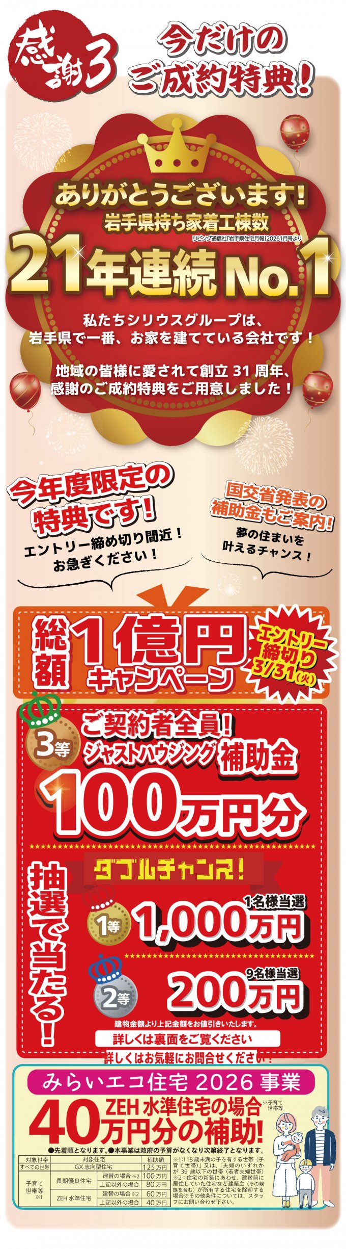 2.弊社施工エリアにて前向きにお家づくりを検討されていると弊社スタッフが判断した方。