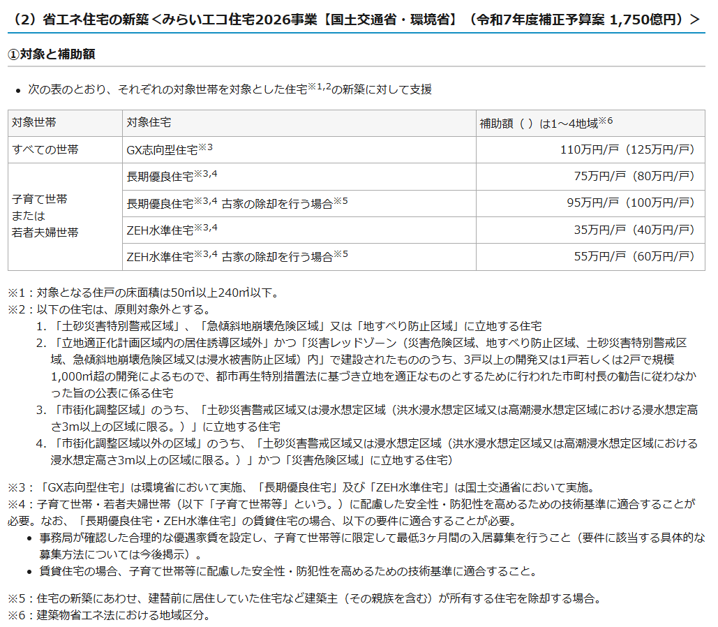 - 3:「GX志向型住宅」は環境省において実施、「長期優良住宅」及び「ZEH水準住宅」は国土交通省において実施。