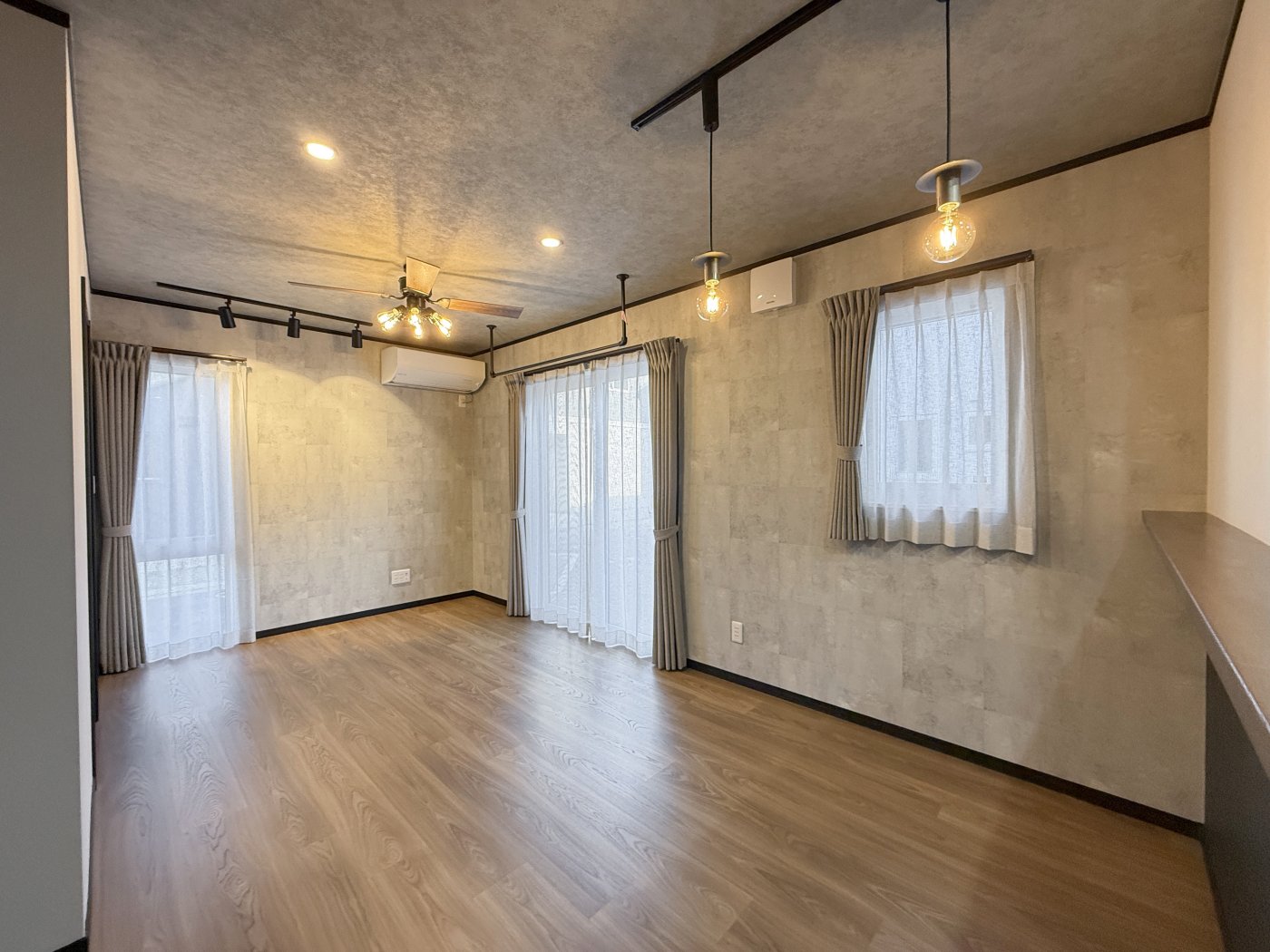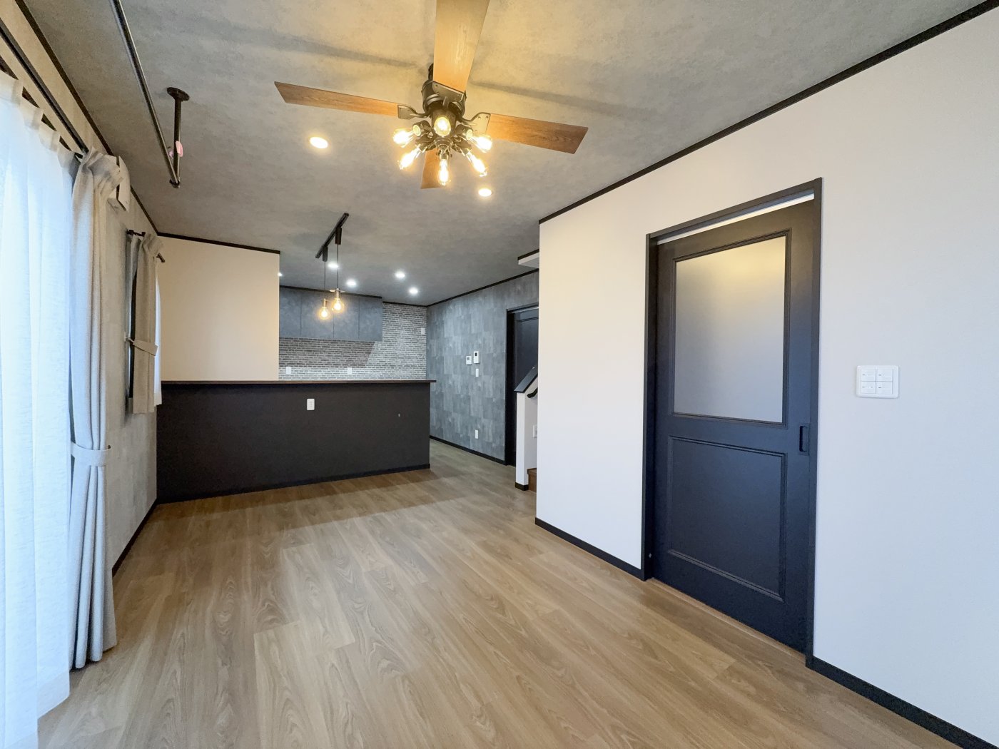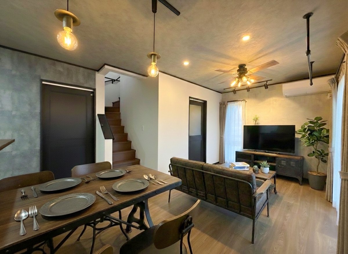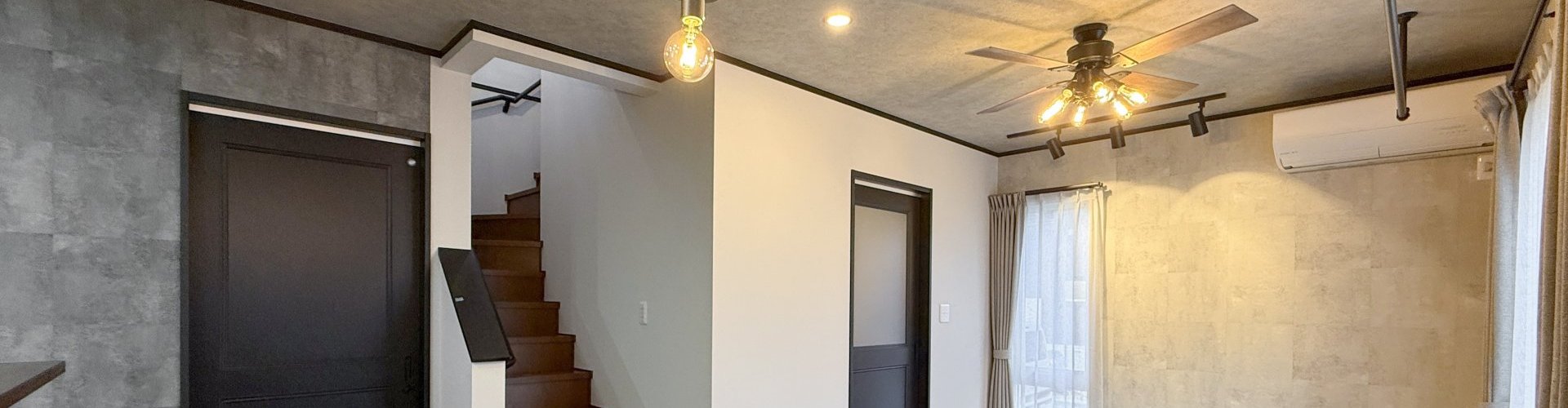 14帖のLDKは、インダストリアルテイストを取り入れた印象的な空間。