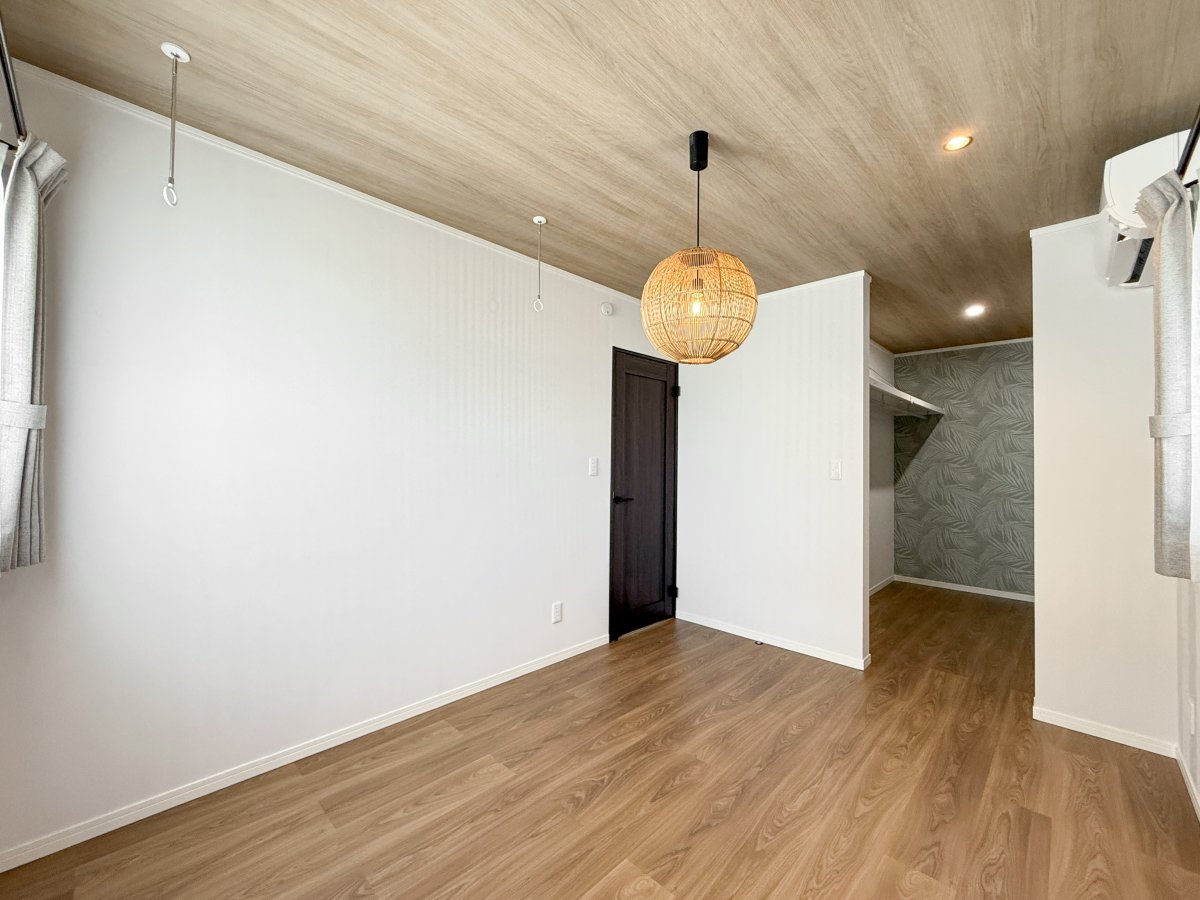 寝室は6帖の広さで、ジャパンディテイストを彷彿とさせるペンダントライトが特徴です。