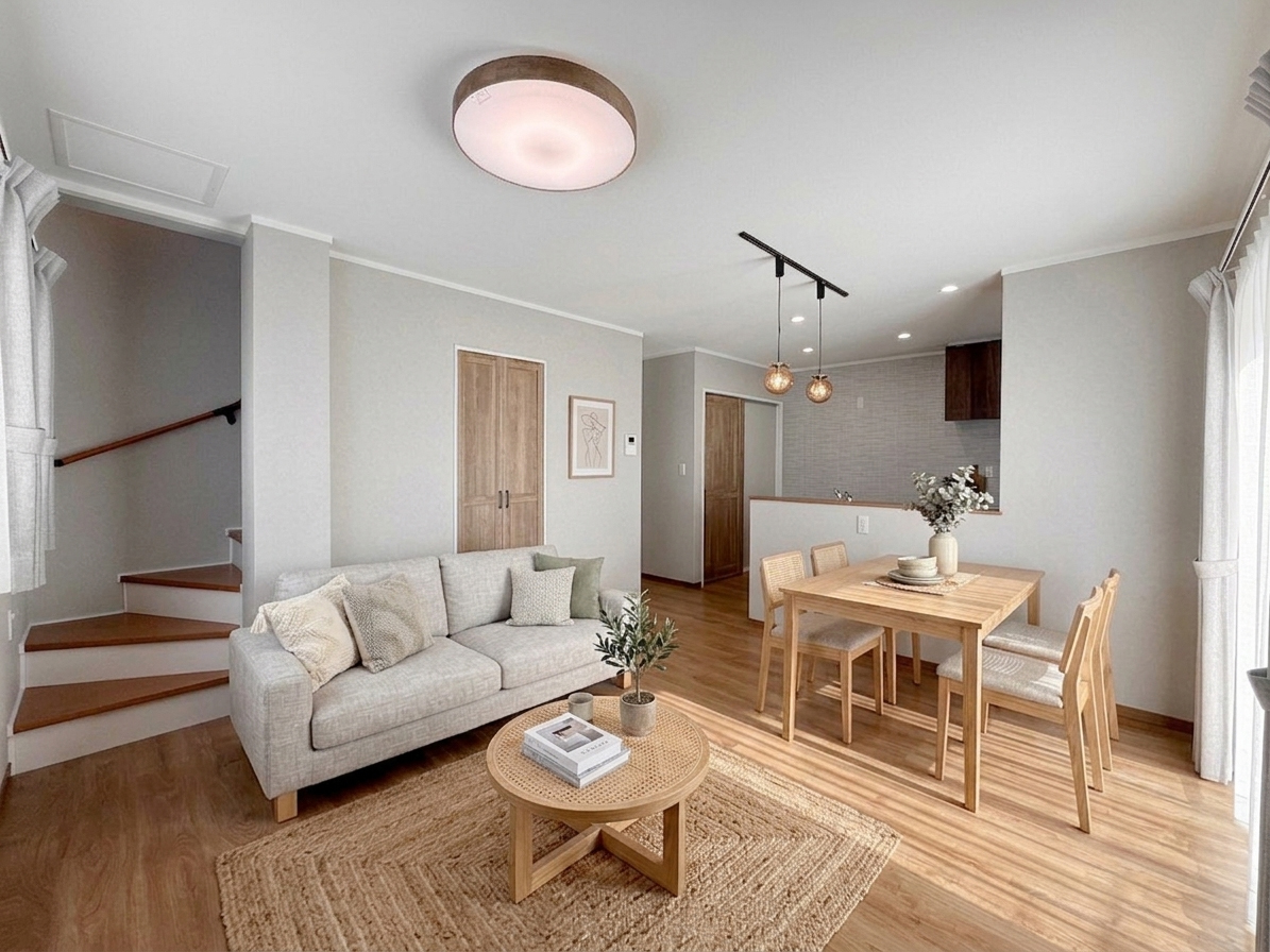 対面キッチン・リビング階段を採用し、ご家族でコミュニケーションがとりやすい間取りになっています。 -
