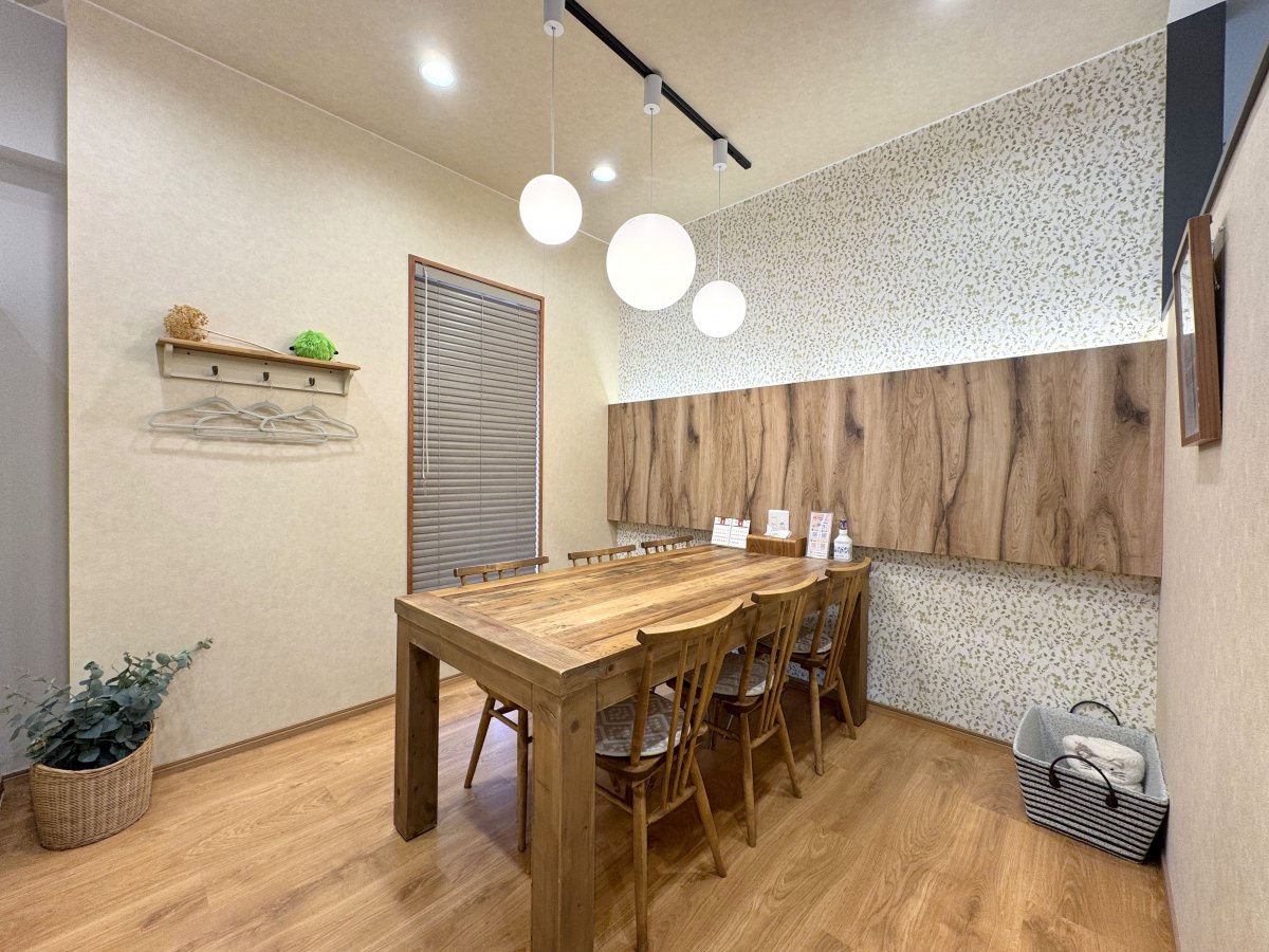 建物の仕様を打合せしていくブースは、2部屋ご用意いたしました。屋根・外壁材・キッチンの扉・クロスなど、具体的にイメージ出来るようにサンプルを取り揃えております。