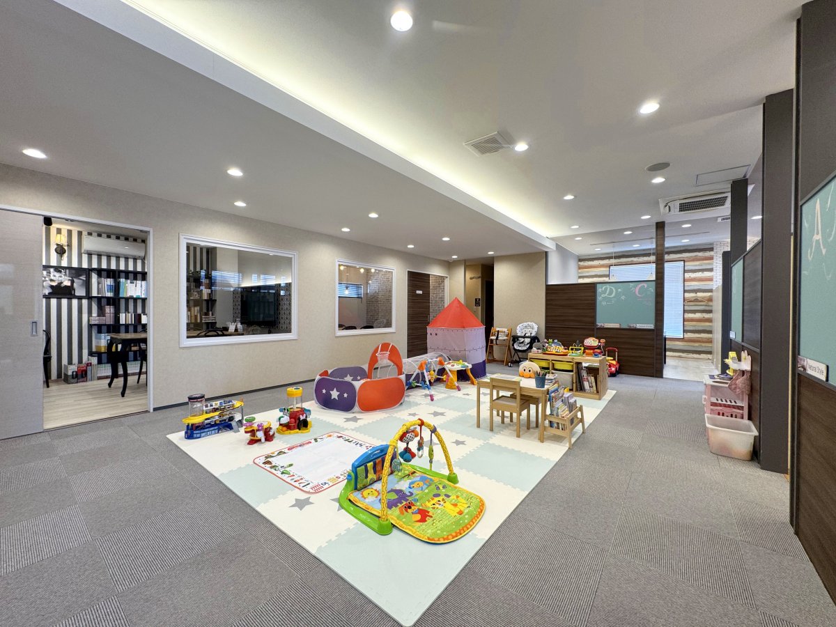 キッズスペースは各ブースの真ん中にあります。お子様の遊んでいるところを見ながらお打合せできます。広くて走り回われるので、「また来たい」とお子様に喜ばれるキッズスペースです。授乳室を完備しておりますので、小さいお子様も一緒にご来場していただいても安心です。
