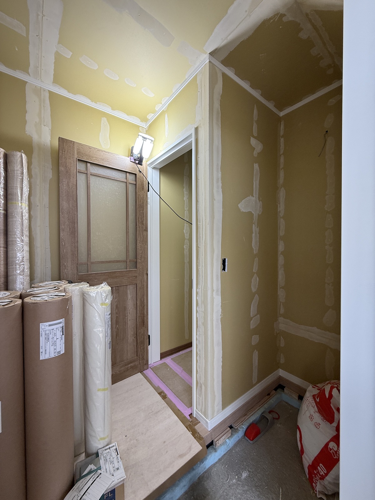 現在は、クロス(壁紙)工事の真っ最中でした!